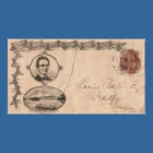 Lincoln, Abraham. Postally used Campaign Cover bearing iconography and image of Lincoln. 5 1/2″ x 3.”