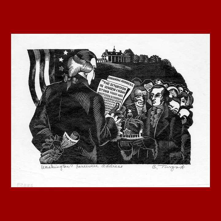Charles Turzak, George Washington, Washington’s Farewell Address, Woodcut Print