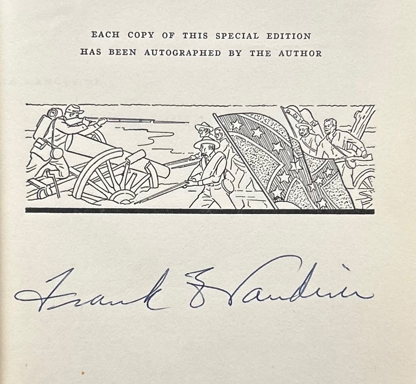 Vandiver, Frank. MIGHTY STONEWALL. New York: McGraw Hill, 1957. 1st “Special” edition, 547p., illustrations, Signed.