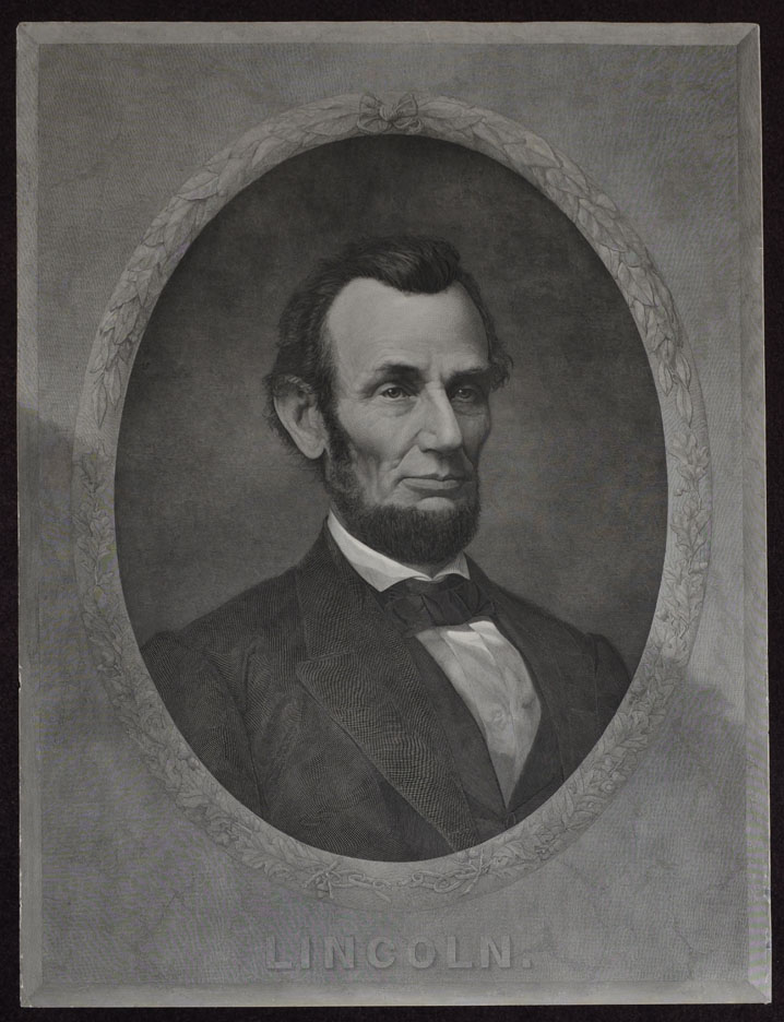 Shortly after Lincoln’s assassination, many artists sought to commemorate the fallen President with paintings, statues and other forms of portraiture. John H. Littlefield, a campaign worker for Lincoln during the election of 1860, commissioned Gugler, then a vignette engraver for the Bureau of Engraving and Printing, to create an engraving from which prints could be created and sold. After two years of labor, the largest engraving of our sixteenth president was produced. The image on the two-by-three foot steel plate, and the prints made from it, capture the distinguished look of one of our nation’s most cherished leaders.