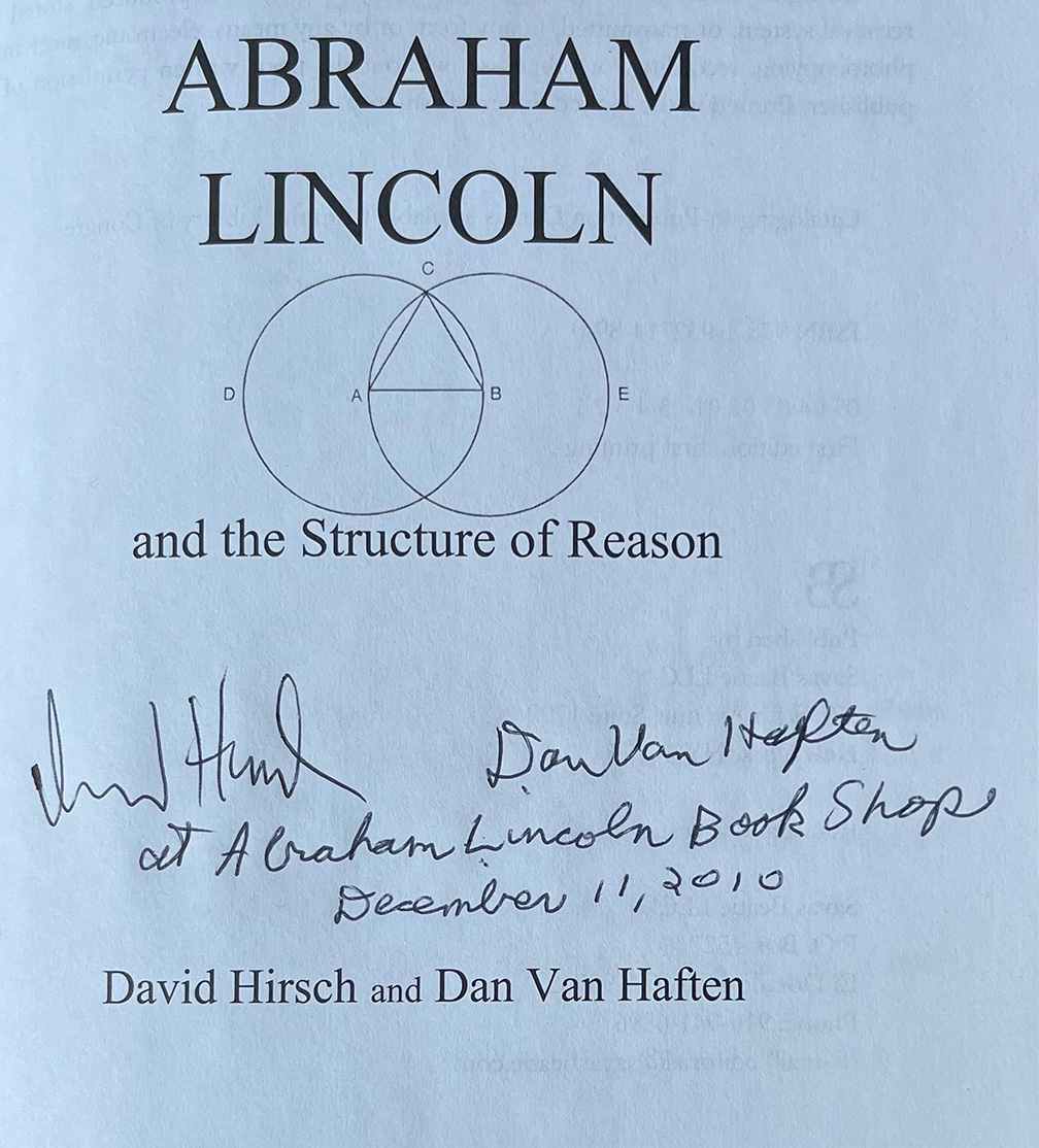Hirsch, David & Van Haften, Dan, Abraham Lincoln and the Structure of Reason, 1st ed. Signed Directly at This Shop