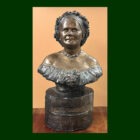 The bust sits on a rough cylinder pedestal. We have never seen this color work for this bust. Usually it is a solid blue-green patina, very similar to copper.