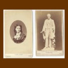 Ream, Vinnie. Two cartes de visite. Vinnie Ream bust photograph, and the Abraham Lincoln statue she created. 4 1/2″ x 3 1/2″ (approx).